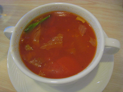 湯可選擇巧達濃湯或蕃茄蔬菜湯,推薦蕃茄蔬菜湯!湯裡多塊番茄味道酸甜濃郁!