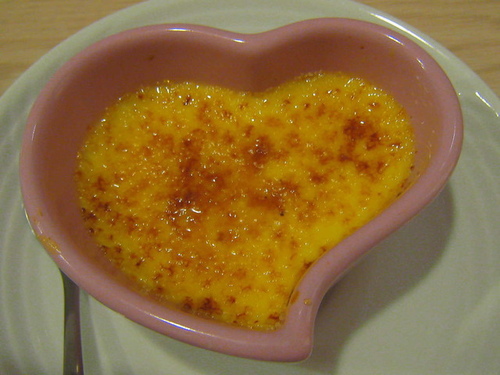甜點布丁,上面有點烤焦糖的感覺,器皿愛心圖案很可愛喔!