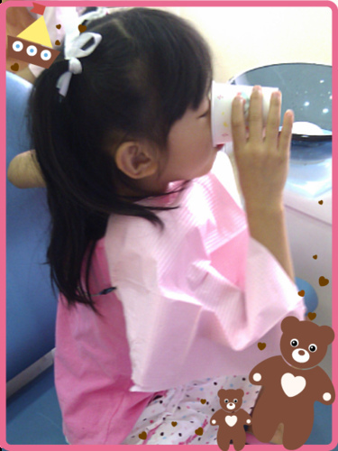 整個療程約15分鐘,妞妞很勇敢及配合喔!媽咪詢問不少有關蛀牙和門牙長出的問題,李醫生很有耐心回答說明,