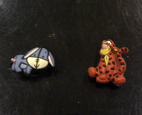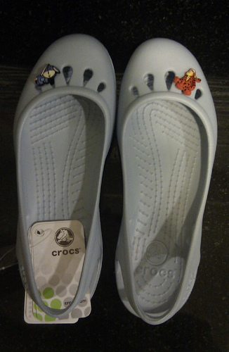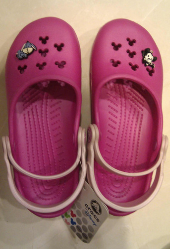 感謝同事Marisa揪團購買crocs,這陣子午後陣雨和大雨, 總算可以派上用場囉!還試穿了其他團友的鞋子,真是滿足! 美琳蒂原價$1280,特價$350! 贈送的配件我選了小驢子和跳跳虎 搭配贈送的配件真是可愛耶! Disney米妮珍桃紅色$550 卡駱班海軍藍色$600 小卡駱班泡泡糖色$500 妞妞開心的穿著鞋擺起pose呢!