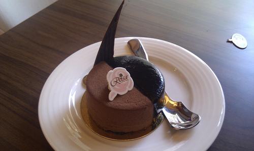 伯爵紅茶巧克力杏仁蛋糕,佐以伯爵紅茶慕斯及蜜核桃為夾層,濃濃茶香清爽宜人。