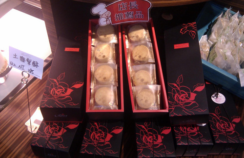 展示櫃商品種類多,有奶油酥餅、鳳梨酥、手工餅乾等。