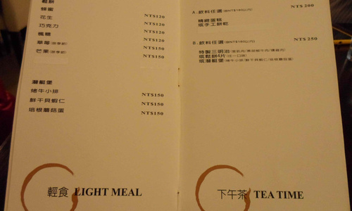 下午茶套餐任選$180以內飲料,可選擇$200或$250的組合
