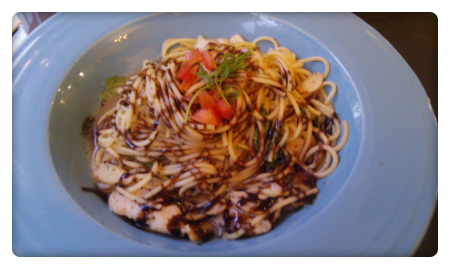 蒜香鮮魚麵佐義式老酒醋$180 魚鮮嫩醬汁清香微酸口感佳-推薦!